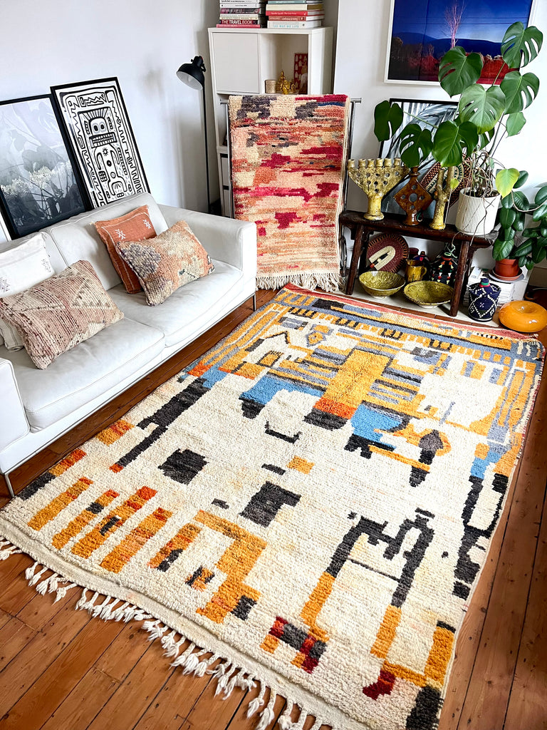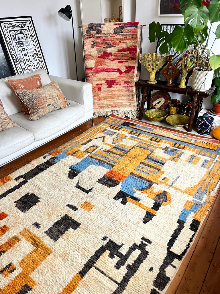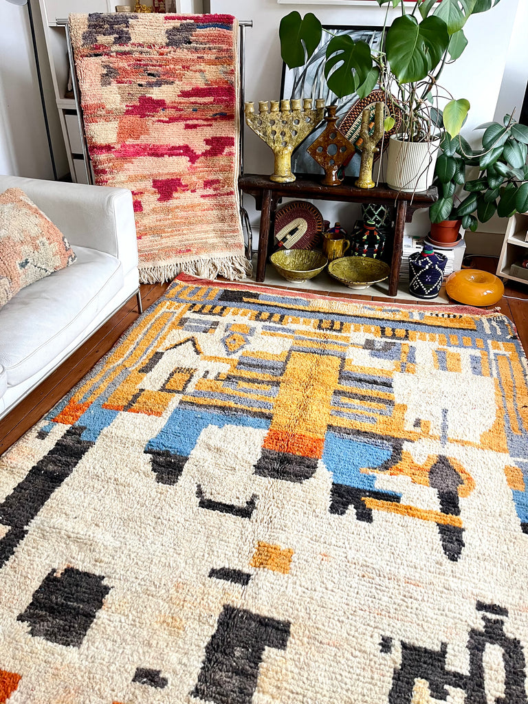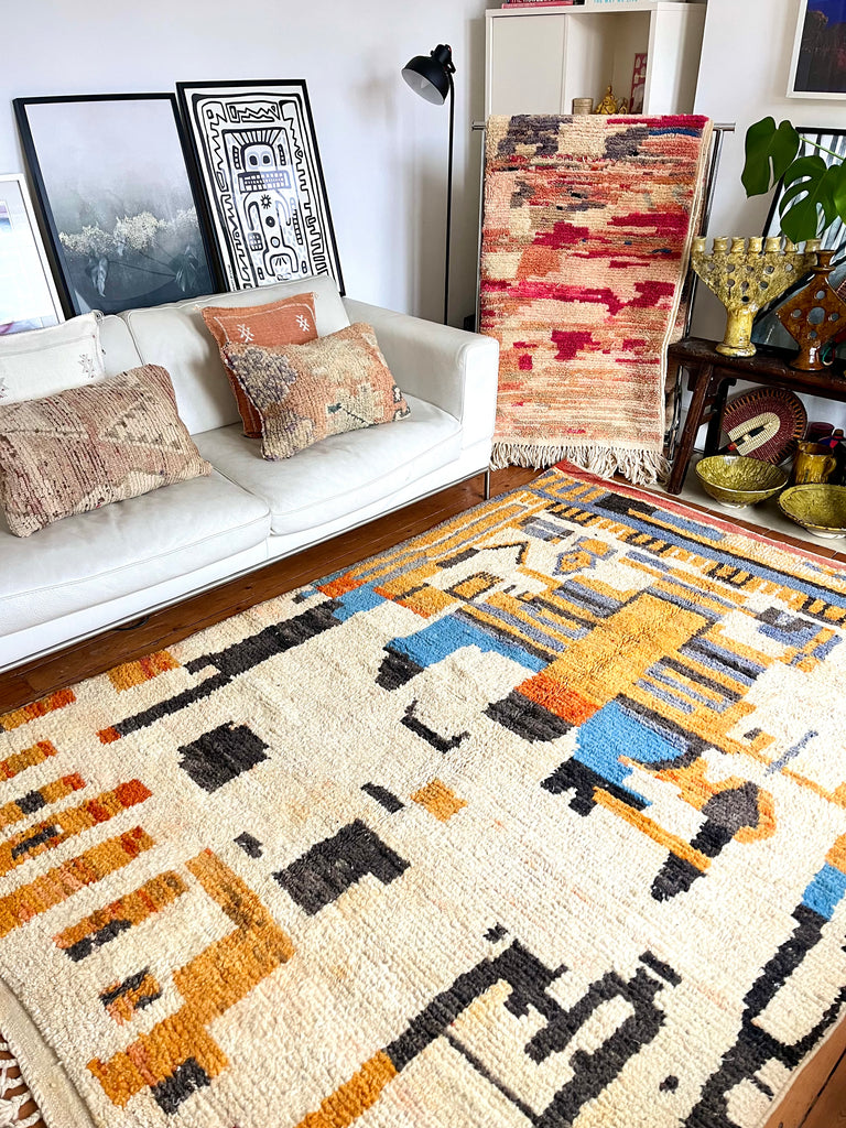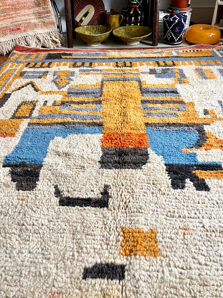 Stunning one of a kind vintage Boujad/Boujaad wool rug, handwoven in the Atlas mountains of Morocco.